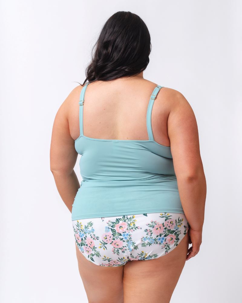 We took all the things you loved about this style and made it better this season! Featuring thick, adjustable straps, the Square-neck Tankini has a built-in shelf bra for great support as well as coverage. A little bit of ruching on the sides gives it some style and we are confident you will love this new version of one of our most popular styles! Pair it with your favorite bottom in this charming collection.