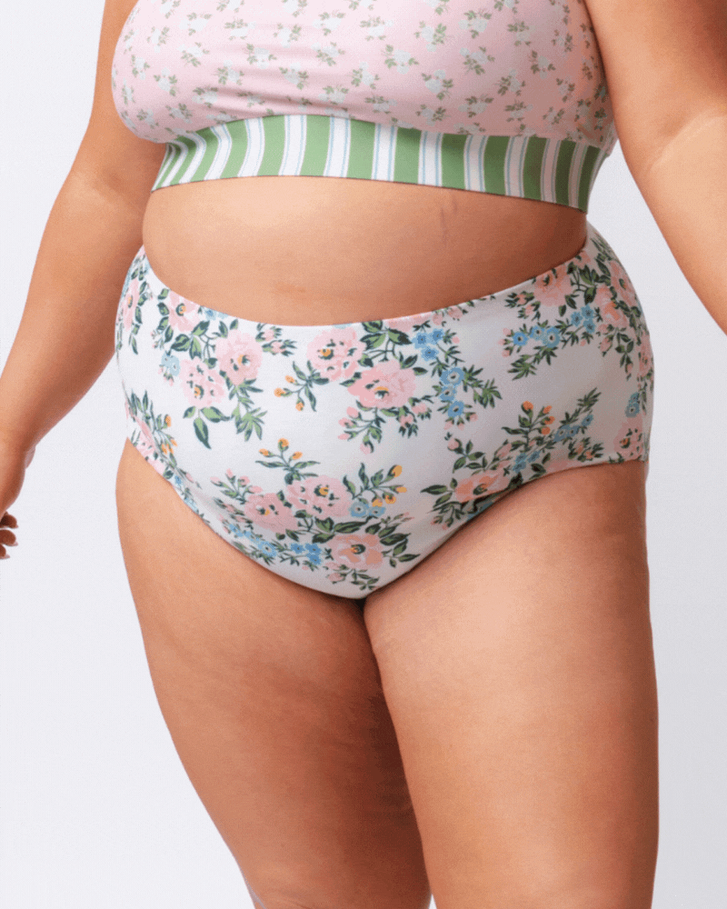 Somerset Floral/ Basil Stripe Reversible Ultra High-Waist Bottom